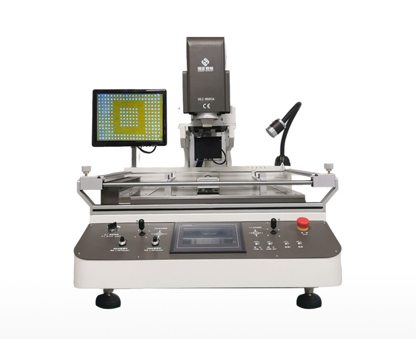 BGA返修臺工作原理是采用熱氣流聚集到表面組裝器件(BGA)的引腳和焊盤上,使焊點融化或使焊膏回流,以完成拆卸或焊接功能。拆卸同時使用一個裝有彈簧和橡皮吸嘴的真空機(jī)械裝置,當(dāng)全部焊點熔化時將BGA輕輕吸起來。熱風(fēng)BGA返修系統(tǒng)的熱氣流是通過可更換的各種不同規(guī)格尺寸熱風(fēng)噴嘴來實現(xiàn)的。